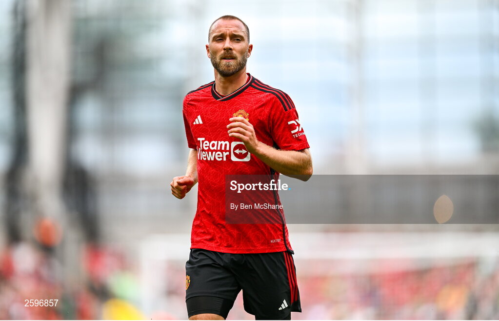 6 August 2023; Christian Eriksen of Manchester United during the pre-season friendly match between Manchester United and Athletic Bilbao at the Aviva Stadium in Dublin. Photo by Ben McShane/Sportsfile