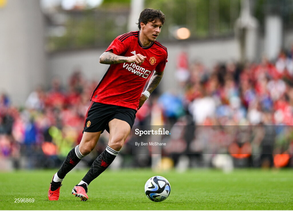 6 August 2023; Victor Lindelöf of Manchester United during the pre-season friendly match between Manchester United and Athletic Bilbao at the Aviva Stadium in Dublin. Photo by Ben McShane/Sportsfile