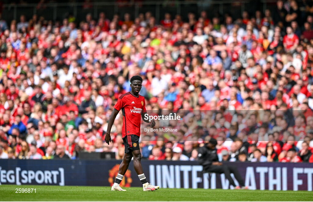 6 August 2023; Omari Forson of Manchester United during the pre-season friendly match between Manchester United and Athletic Bilbao at the Aviva Stadium in Dublin. Photo by Ben McShane/Sportsfile
