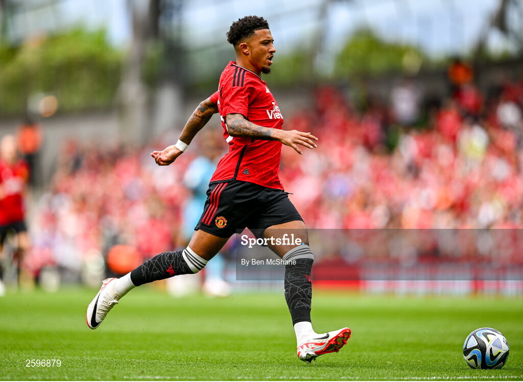 6 August 2023; Jadon Sancho of Manchester United during the pre-season friendly match between Manchester United and Athletic Bilbao at the Aviva Stadium in Dublin. Photo by Ben McShane/Sportsfile