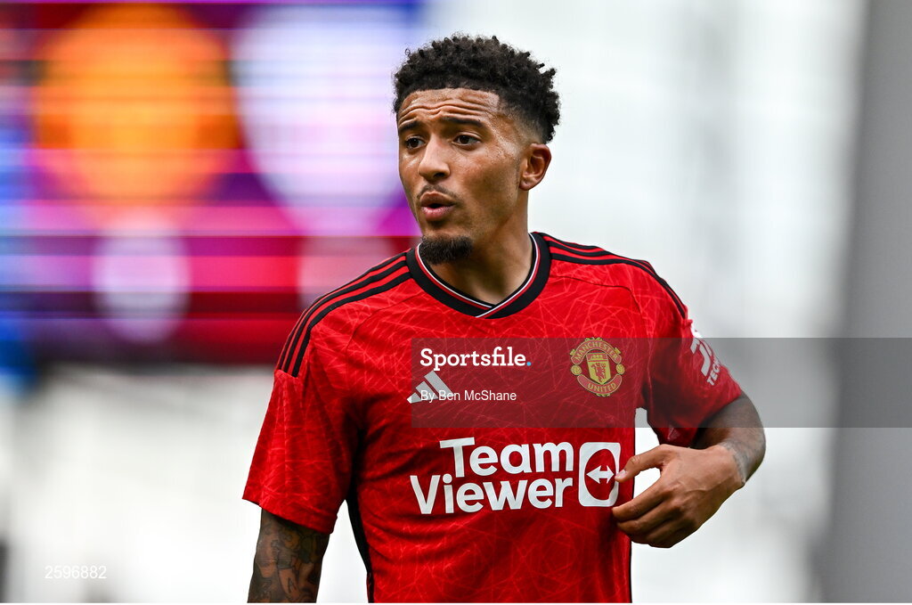 6 August 2023; Jadon Sancho of Manchester United during the pre-season friendly match between Manchester United and Athletic Bilbao at the Aviva Stadium in Dublin. Photo by Ben McShane/Sportsfile
