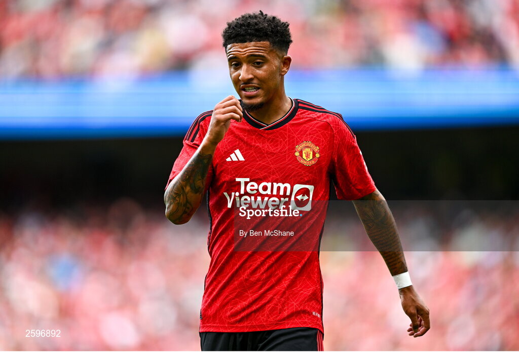 6 August 2023; Jadon Sancho of Manchester United during the pre-season friendly match between Manchester United and Athletic Bilbao at the Aviva Stadium in Dublin. Photo by Ben McShane/Sportsfile
