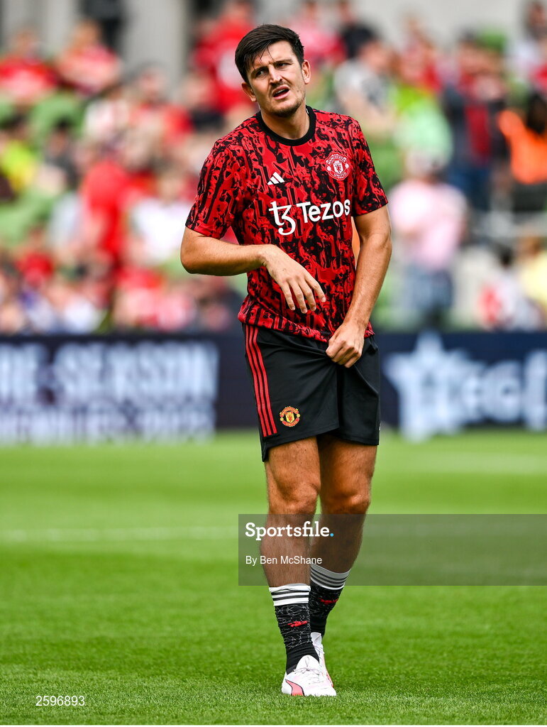 6 August 2023; Harry Maguire of Manchester United before the pre-season friendly match between Manchester United and Athletic Bilbao at the Aviva Stadium in Dublin. Photo by Ben McShane/Sportsfile