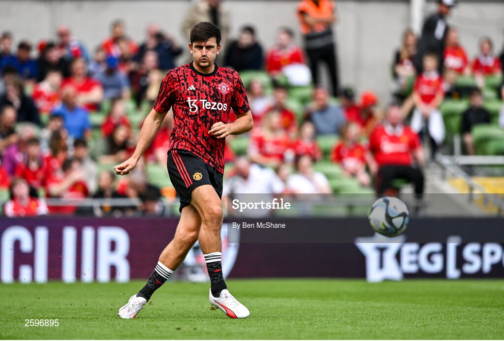 6 August 2023; Harry Maguire of Manchester United before the pre-season friendly match between Manchester United and Athletic Bilbao at the Aviva Stadium in Dublin. Photo by Ben McShane/Sportsfile