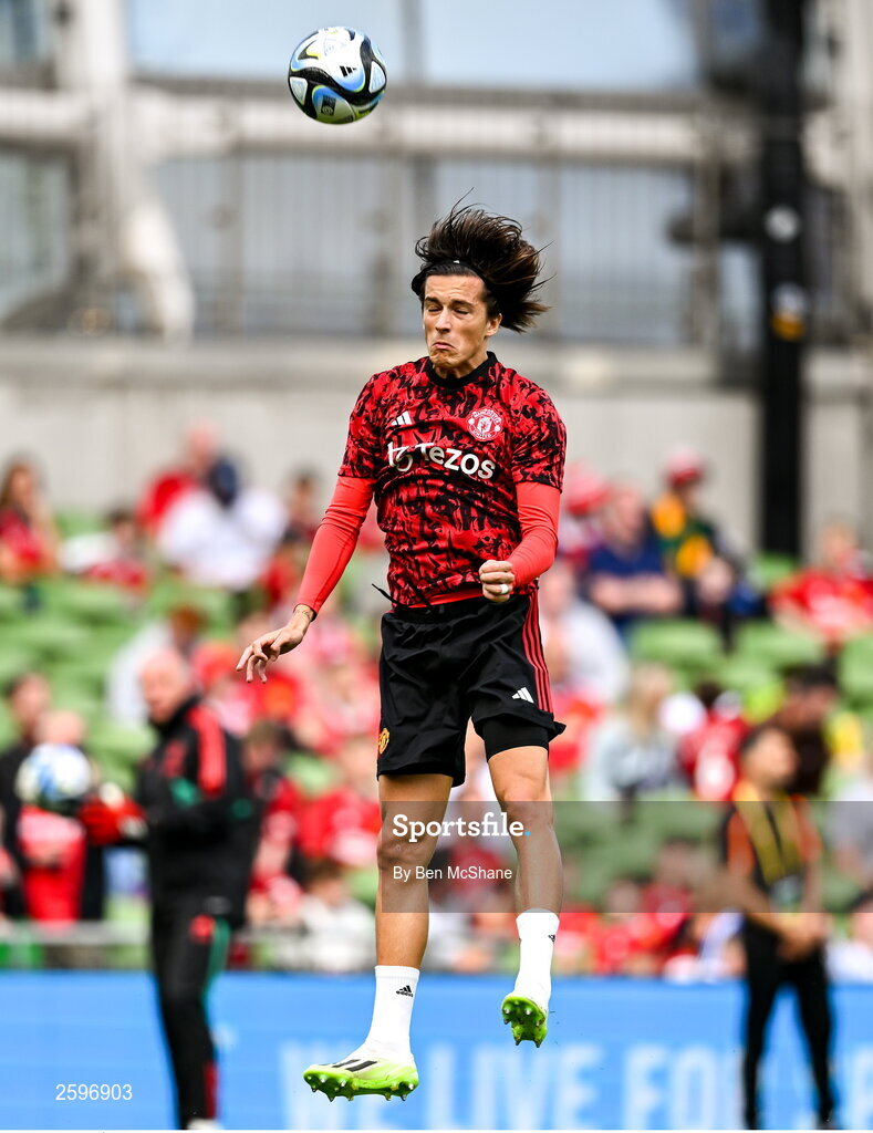 6 August 2023; Álvaro Fernández of Manchester United before the pre-season friendly match between Manchester United and Athletic Bilbao at the Aviva Stadium in Dublin. Photo by Ben McShane/Sportsfile