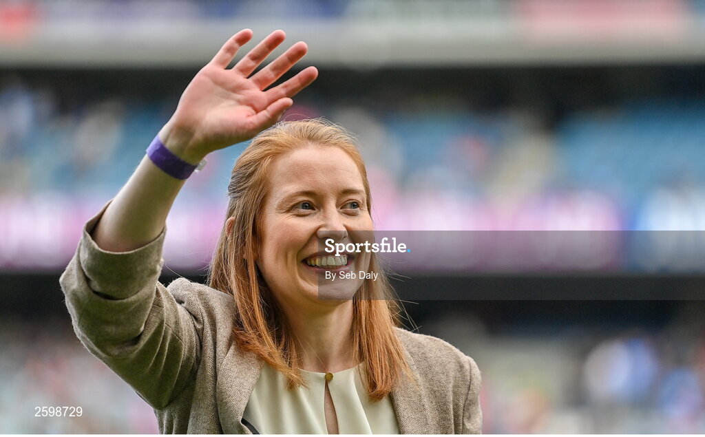 13 August 2023; 2012 Cork All-Ireland winning captain Rena Buckley is honoured at half-time of the TG4 LGFA All-Ireland Senior Championship Final at Croke Park in Dublin. Photo by Seb Daly/Sportsfile
