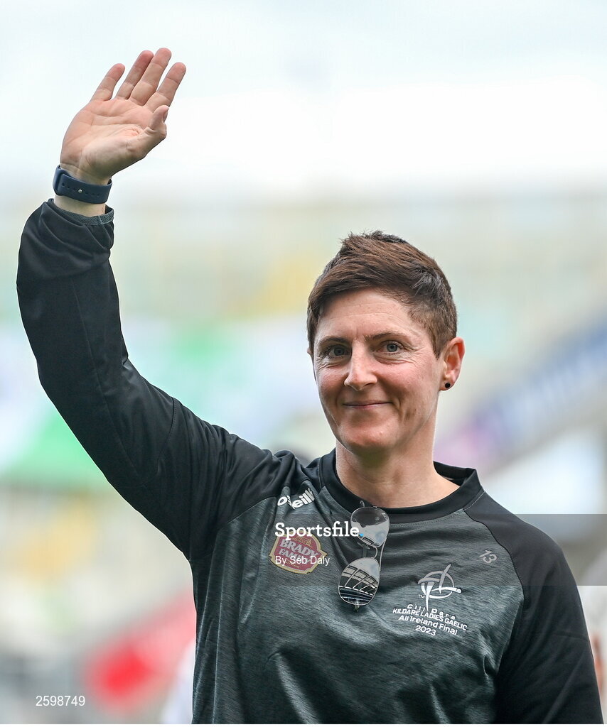 13 August 2023; 1999 Mayo All-Ireland winning captain Diane O’Hora is honoured at half-time of the TG4 LGFA All-Ireland Senior Championship Final at Croke Park in Dublin. Photo by Seb Daly/Sportsfile