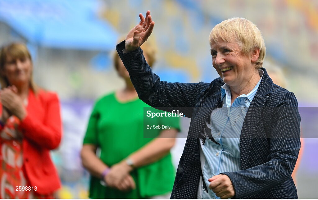 13 August 2023; 1984 Kerry All-Ireland winning captain Bridget Leen is honoured at half-time of the TG4 LGFA All-Ireland Senior Championship Final at Croke Park in Dublin. Photo by Seb Daly/Sportsfile