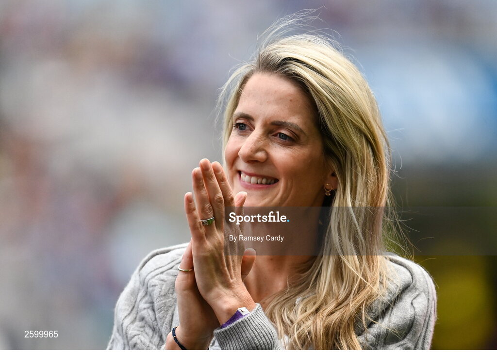 13 August 2023; 2005, 2006 and 2007, Cork All-Ireland winning captain Juliet Murphy is honoured at half-time of the TG4 LGFA All-Ireland Senior Championship Final at Croke Park in Dublin. Photo by Ramsey Cardy/Sportsfile