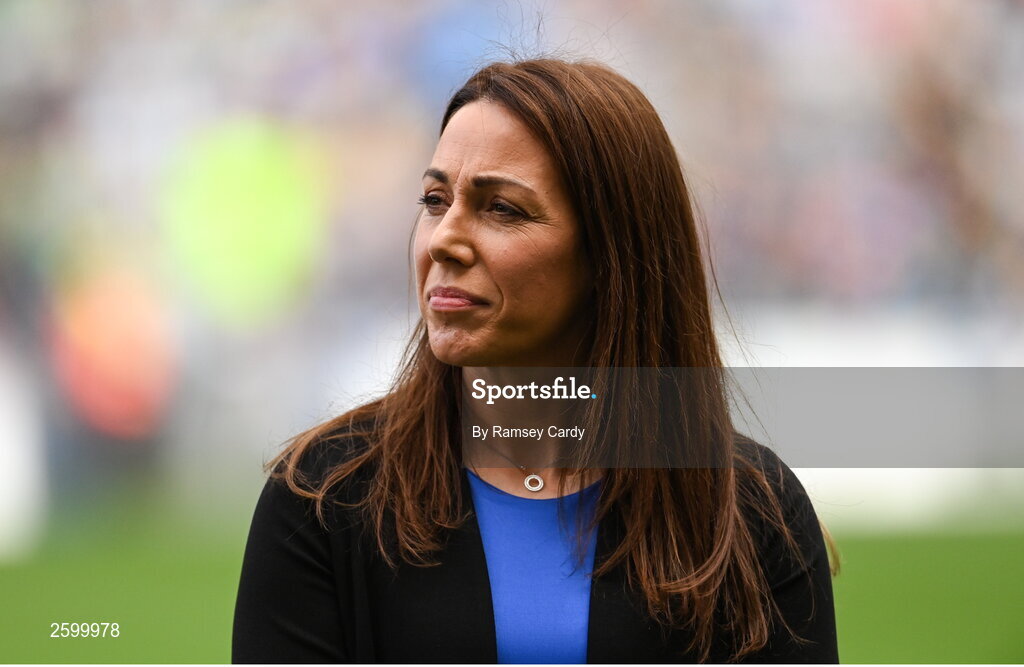 13 August 2023; 2010 Dublin All-Ireland winning captain Denise Masterson is honoured at half-time of the TG4 LGFA All-Ireland Senior Championship Final at Croke Park in Dublin. Photo by Ramsey Cardy/Sportsfile