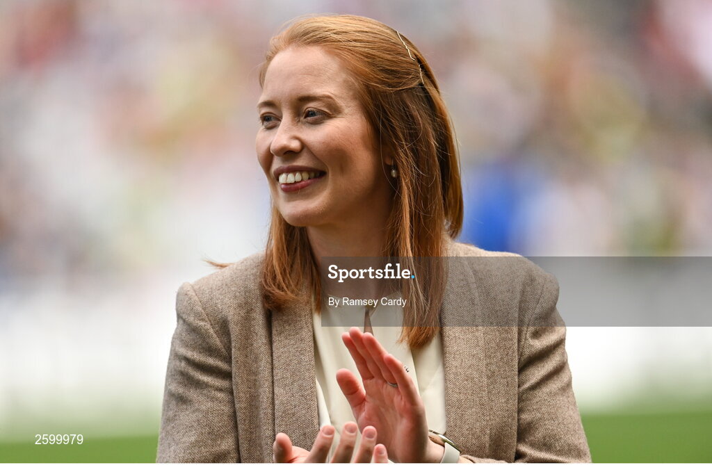 13 August 2023; 2012 Cork All-Ireland winning captain Rena Buckley is honoured at half-time of the TG4 LGFA All-Ireland Senior Championship Final at Croke Park in Dublin. Photo by Ramsey Cardy/Sportsfile