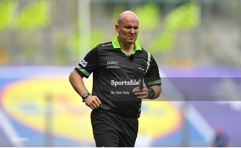 13 August 2023; Referee Shane Curley during the 2023 TG4 LGFA All-Ireland Senior Championship Final match between Dublin and Kerry at Croke Park in Dublin. Photo by Seb Daly/Sportsfile