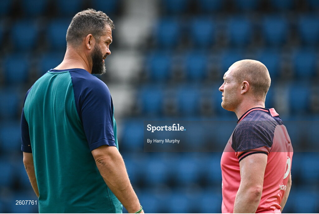 22 August 2023; Head coach Andy Farrell and Keith Earls during an Ireland rugby squad training session at Parc des Sports Jean Dauger in Bayonne, France. Photo by Harry Murphy/Sportsfile