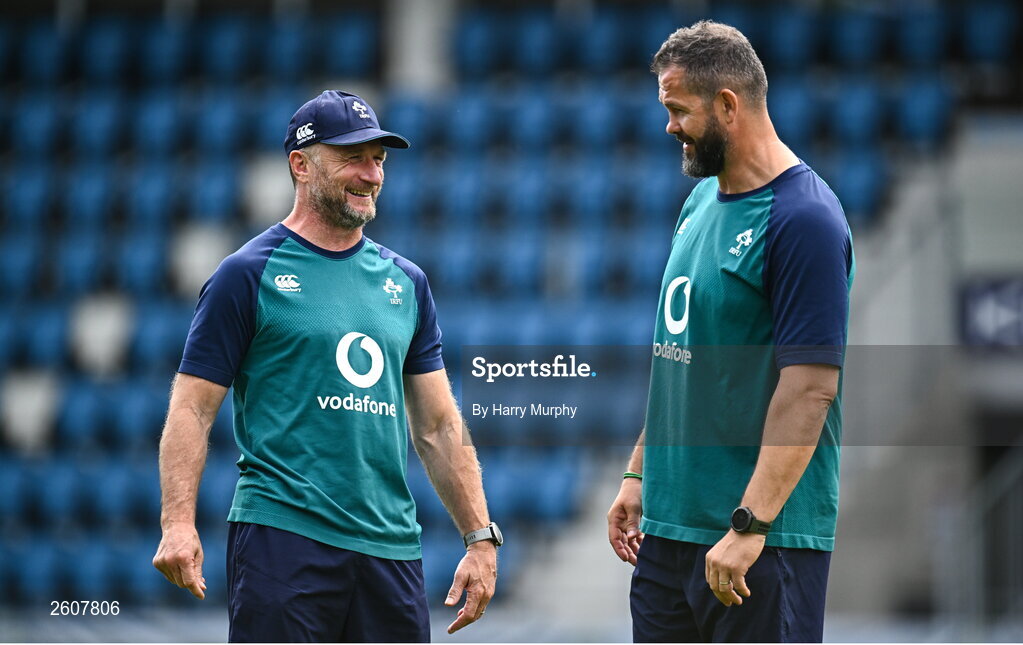 22 August 2023; Assistant coach Mike Catt and head coach Andy Farrell during an Ireland rugby squad training session at Parc des Sports Jean Dauger in Bayonne, France. Photo by Harry Murphy/Sportsfile