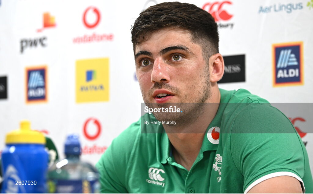 22 August 2023; Jimmy O’Brien during an Ireland rugby media conference at Parc des Sports Jean Dauger in Bayonne, France. Photo by Harry Murphy/Sportsfile