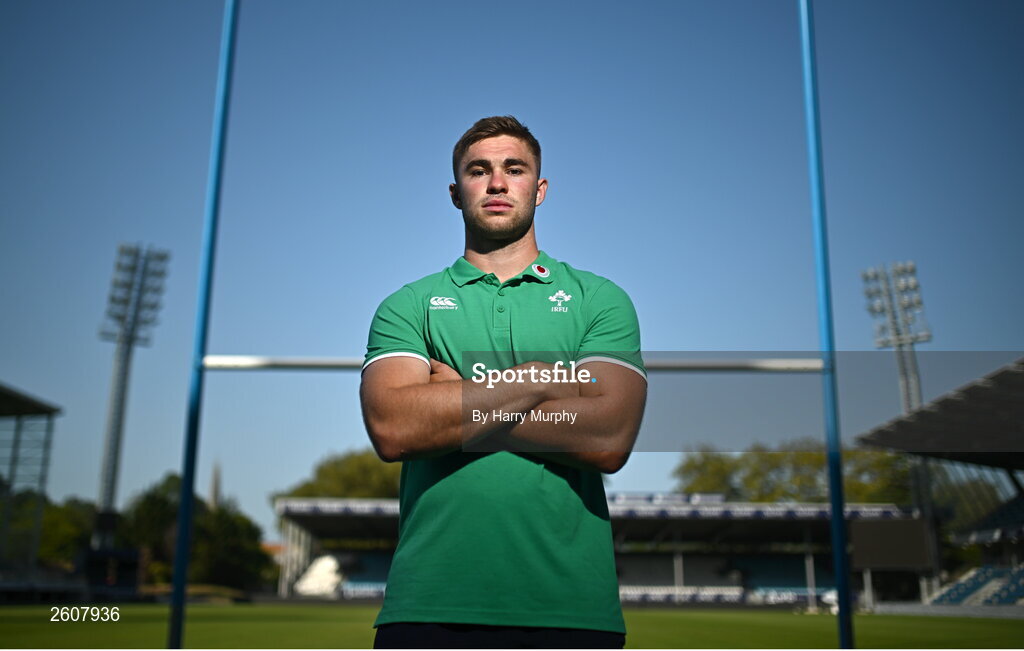 22 August 2023; Jack Crowley during an Ireland rugby media conference at Parc des Sports Jean Dauger in Bayonne, France. Photo by Harry Murphy/Sportsfile