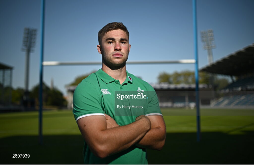 22 August 2023; Jack Crowley during an Ireland rugby media conference at Parc des Sports Jean Dauger in Bayonne, France. Photo by Harry Murphy/Sportsfile