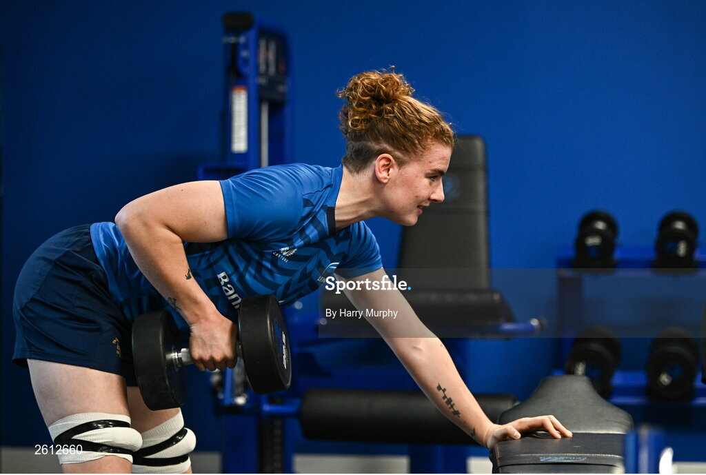 30 August 2023; Ruth Campbell during a Leinster rugby women's gym session at Energia Park in Dublin. Photo by Harry Murphy/Sportsfile