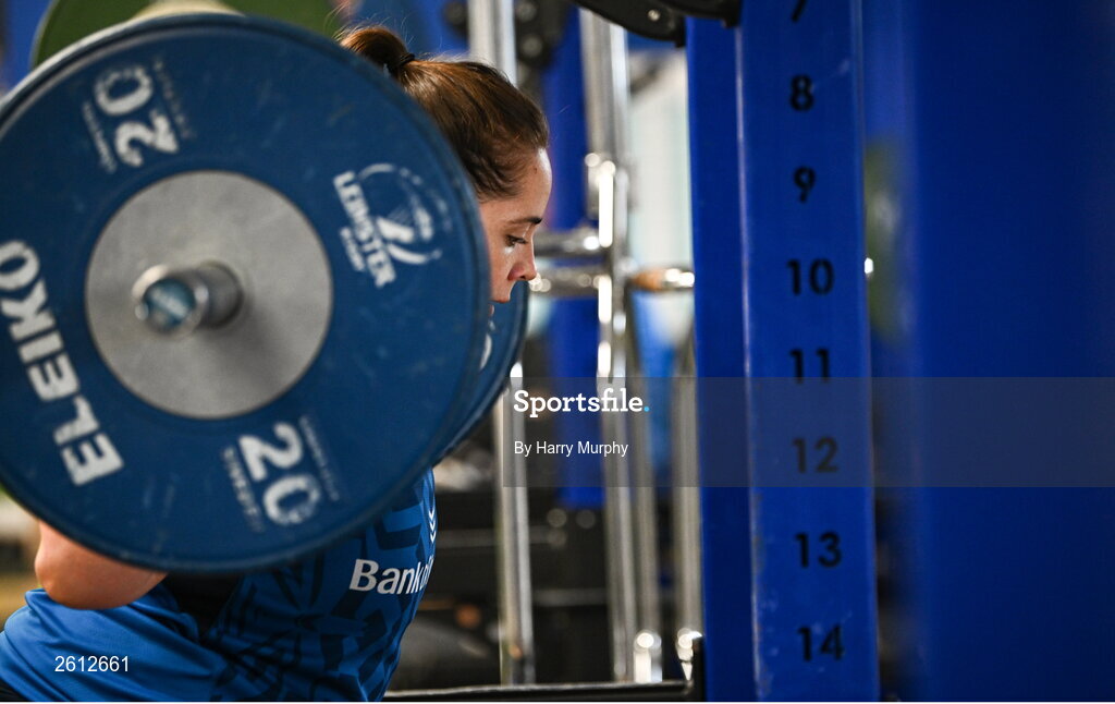 30 August 2023; Lisa Callan during a Leinster rugby women's gym session at Energia Park in Dublin. Photo by Harry Murphy/Sportsfile