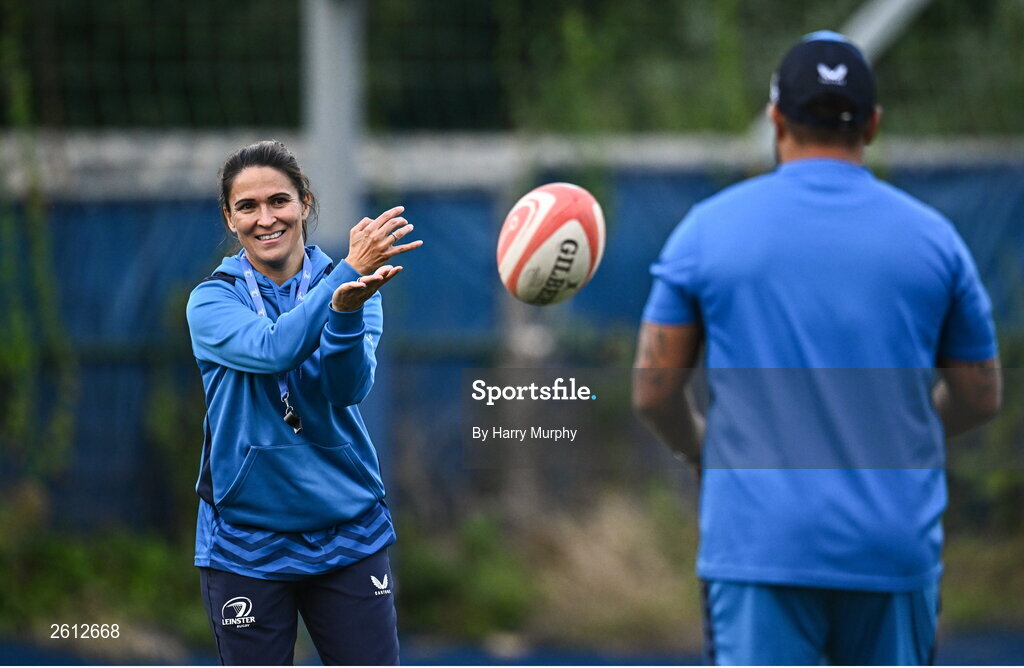 30 August 2023; Head coach Tania Rosser during a Leinster rugby women's squad training session at Energia Park in Dublin. Photo by Harry Murphy/Sportsfile