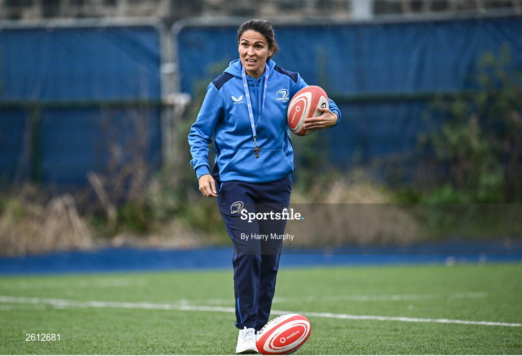 30 August 2023; Head coach Tania Rosser during a Leinster rugby women's squad training session at Energia Park in Dublin. Photo by Harry Murphy/Sportsfile