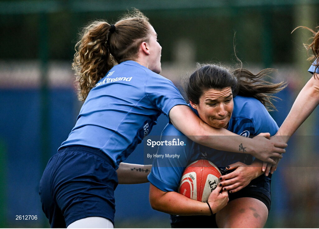 30 August 2023; Christy Haney, right, and Ruth Campbell during a Leinster rugby women's squad training session at Energia Park in Dublin. Photo by Harry Murphy/Sportsfile