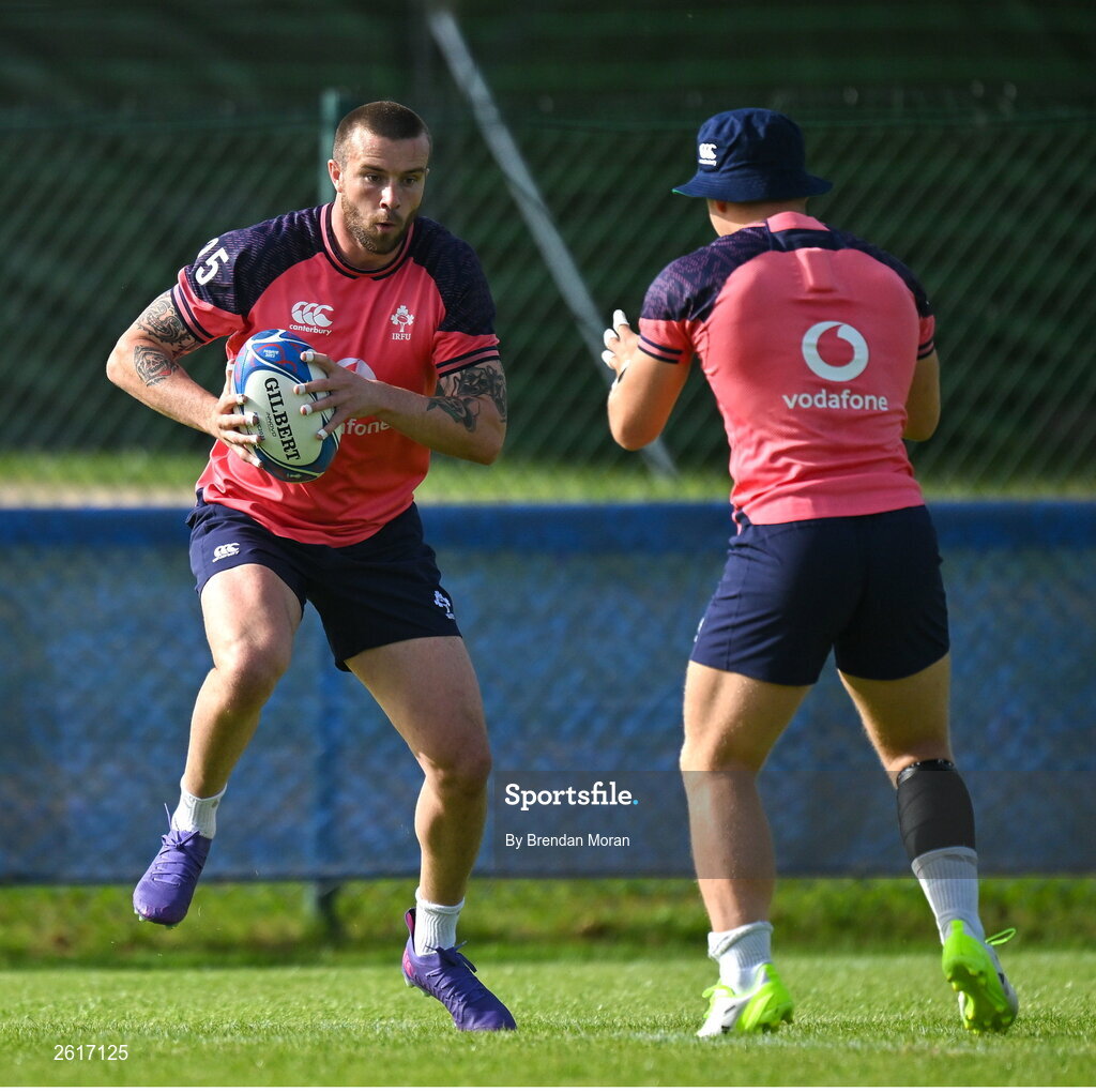 5 September 2023; Mack Hansen during an Ireland rugby squad training session at Complexe de la Chambrerie in Tours, France. Photo by Brendan Moran/Sportsfile