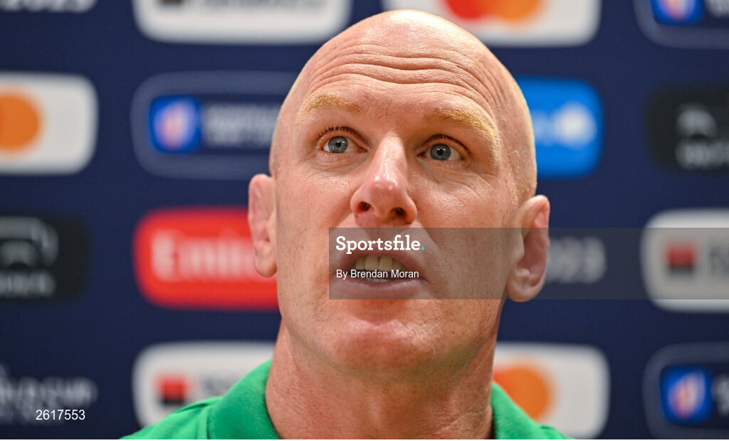 5 September 2023; Forwards coach Paul O'Connell during an Ireland rugby media conference at Tours Town Hall in Tours, France. Photo by Brendan Moran/Sportsfile