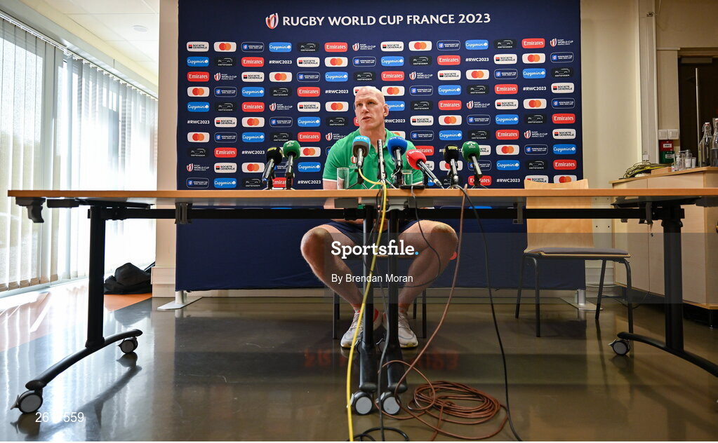 5 September 2023; Forwards coach Paul O'Connell during an Ireland rugby media conference at Tours Town Hall in Tours, France. Photo by Brendan Moran/Sportsfile