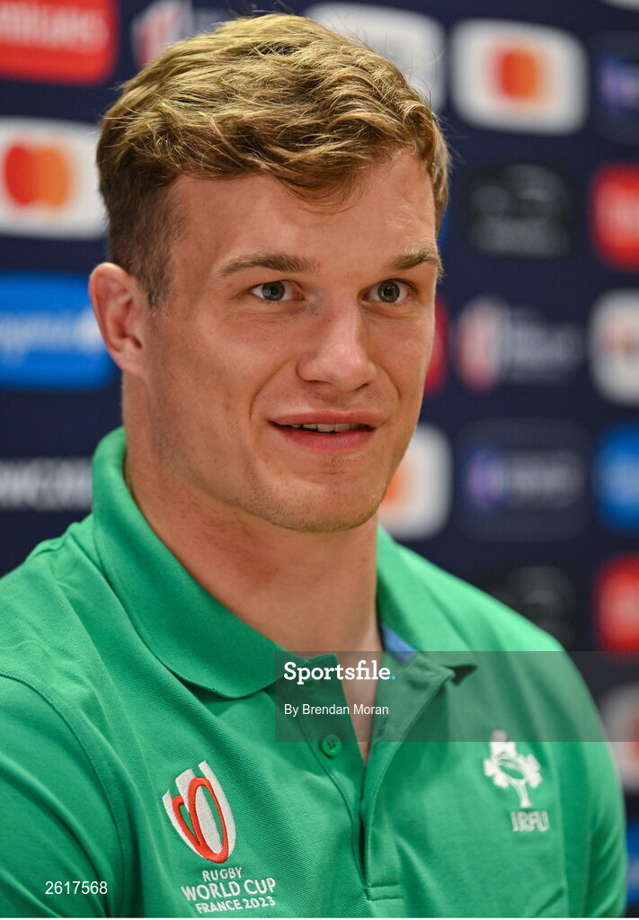 5 September 2023; Josh van der Flier during an Ireland rugby media conference at Tours Town Hall in Tours, France. Photo by Brendan Moran/Sportsfile