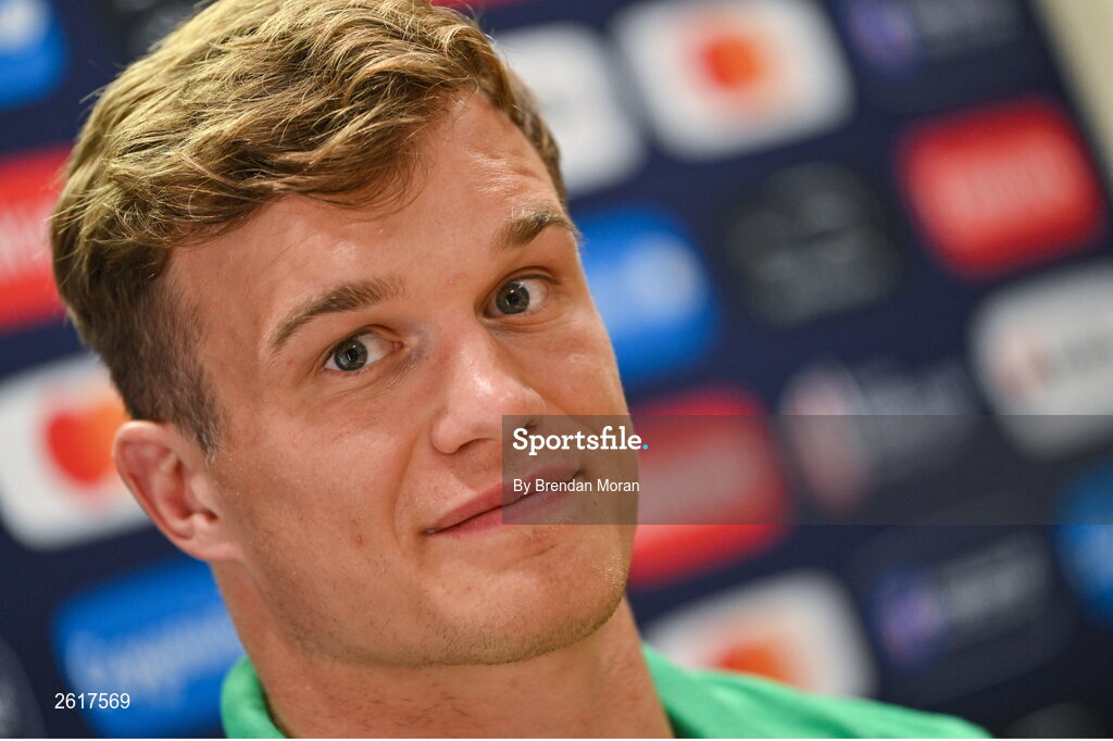 5 September 2023; Josh van der Flier during an Ireland rugby media conference at Tours Town Hall in Tours, France. Photo by Brendan Moran/Sportsfile