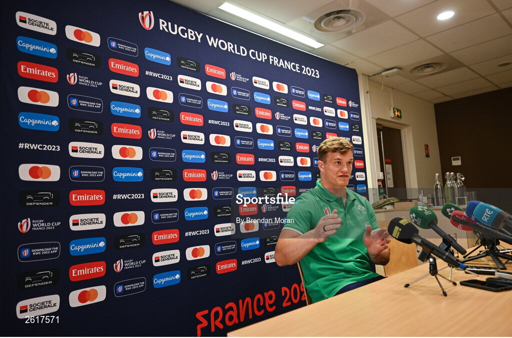 5 September 2023; Josh van der Flier during an Ireland rugby media conference at Tours Town Hall in Tours, France. Photo by Brendan Moran/Sportsfile