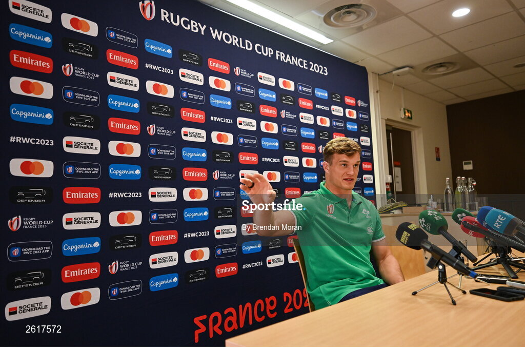 5 September 2023; Josh van der Flier during an Ireland rugby media conference at Tours Town Hall in Tours, France. Photo by Brendan Moran/Sportsfile