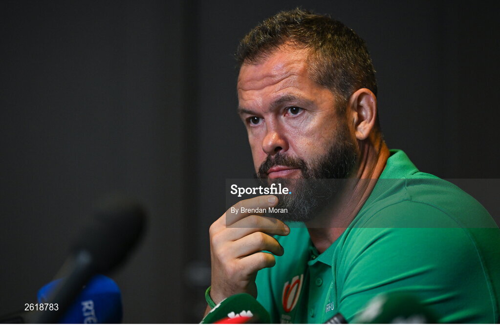 7 September 2023; Head coach Andy Farrell during an Ireland rugby media conference at the Mercure Hotel in Bordeaux, France. Photo by Brendan Moran/Sportsfile