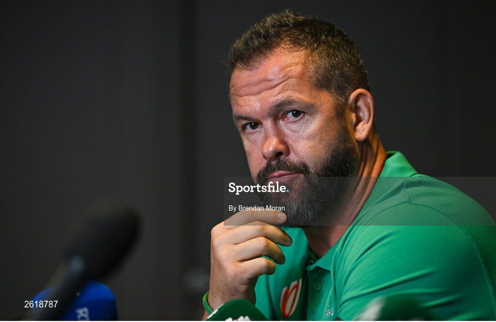 7 September 2023; Head coach Andy Farrell during an Ireland rugby media conference at the Mercure Hotel in Bordeaux, France. Photo by Brendan Moran/Sportsfile