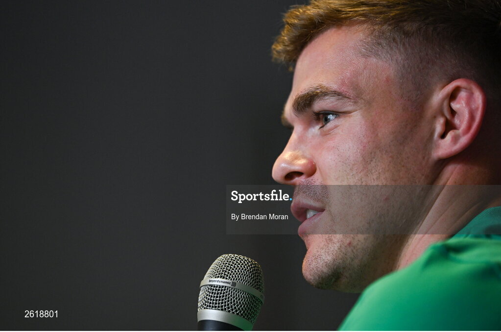 7 September 2023; Garry Ringrose during an Ireland rugby media conference at the Mercure Hotel in Bordeaux, France. Photo by Brendan Moran/Sportsfile