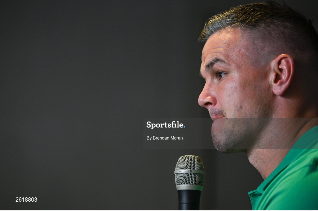 7 September 2023; Captain Jonathan Sexton during an Ireland rugby media conference at the Mercure Hotel in Bordeaux, France. Photo by Brendan Moran/Sportsfile