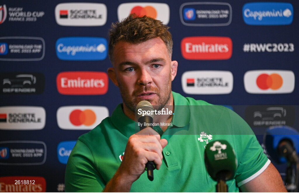 7 September 2023; Peter O’Mahony during an Ireland rugby media conference at the Mercure Hotel in Bordeaux, France. Photo by Brendan Moran/Sportsfile