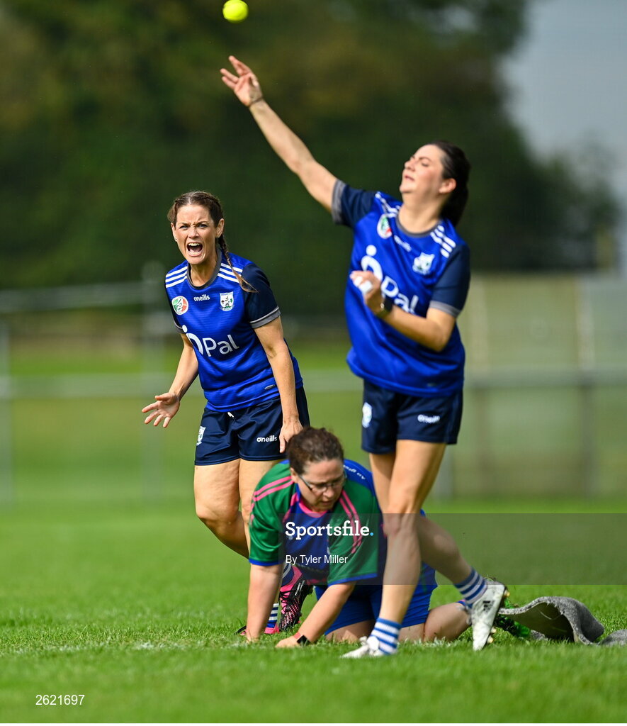 10 September 2023; Paula Doherty of Breaffy GAA celebrates after an out during the GAA Rounders All Ireland Senior Finals match between Breaffy GAA and Glynn Barntown at Kinnegad GAA in Kinnegad, Westmeath. Photo by Tyler Miller/Sportsfile