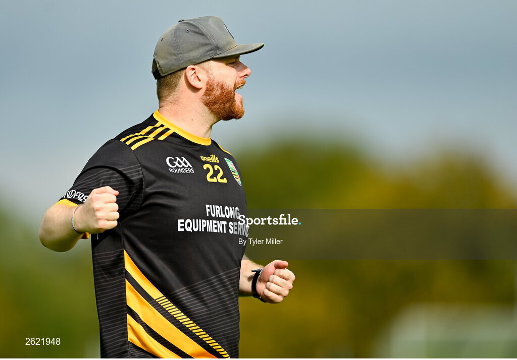 10 September 2023; Rory Tracy of The Heath celebrates after the end of an inning during the GAA Rounders All Ireland Senior Finals match between Limekiln Rounders GAA and The Heath at Kinnegad GAA in Kinnegad, Westmeath. Photo by Tyler Miller/Sportsfile