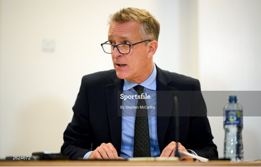 14 September 2023; FAI chief executive Jonathan Hill during an FAI media briefing at FAI Headquarters in Abbotstown, Dublin. Photo by Stephen McCarthy/Sportsfile