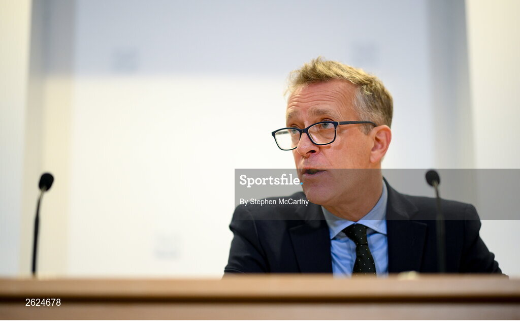 14 September 2023; FAI chief executive Jonathan Hill during an FAI media briefing at FAI Headquarters in Abbotstown, Dublin. Photo by Stephen McCarthy/Sportsfile