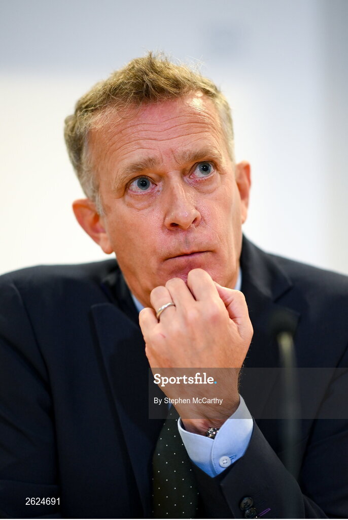 14 September 2023; FAI chief executive Jonathan Hill during an FAI media briefing at FAI Headquarters in Abbotstown, Dublin. Photo by Stephen McCarthy/Sportsfile