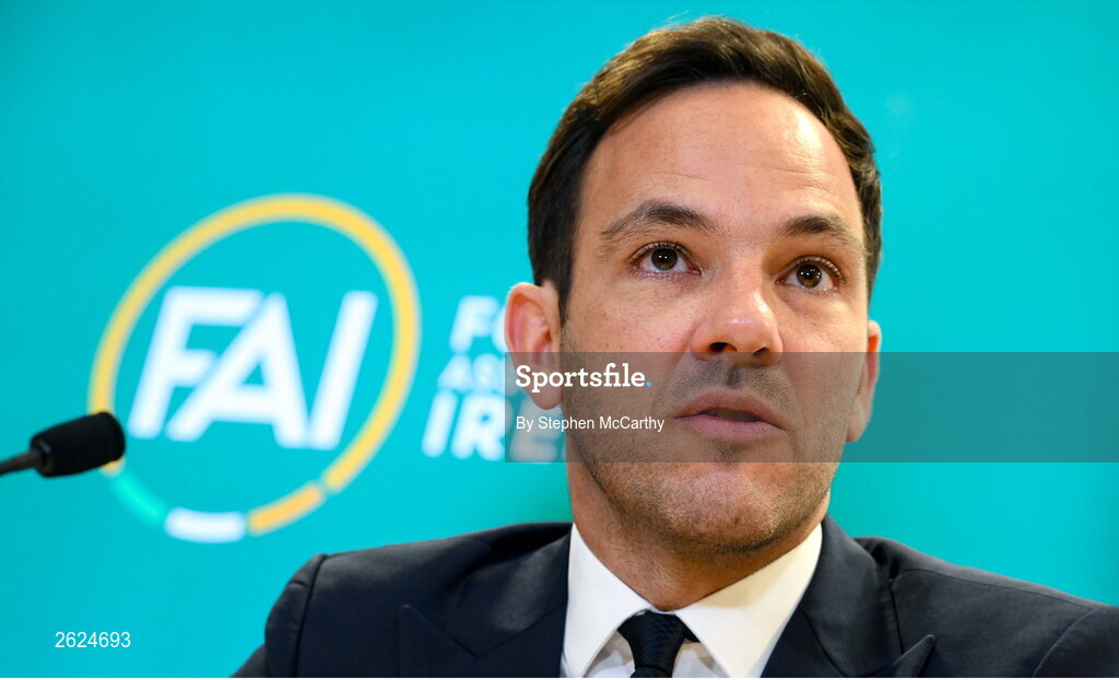 14 September 2023; FAI director of football Marc Canham during an FAI media briefing at FAI Headquarters in Abbotstown, Dublin. Photo by Stephen McCarthy/Sportsfile