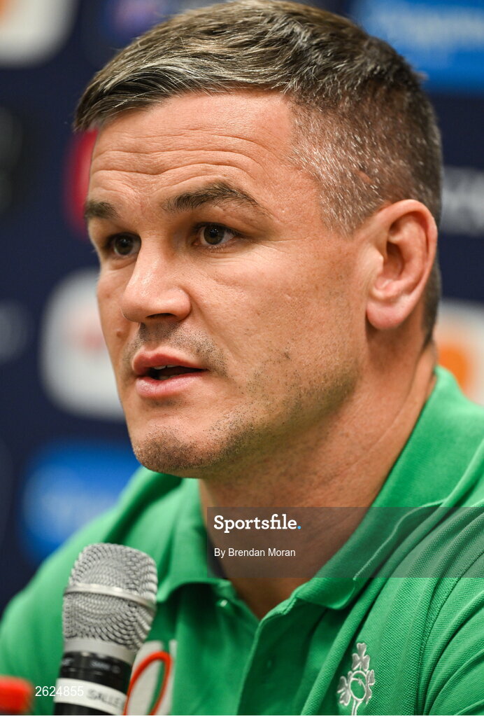 14 September 2023; Captain Jonathan Sexton during an Ireland rugby media conference at the Westotel Nantes Atlantique in Nantes, France. Photo by Brendan Moran/Sportsfile