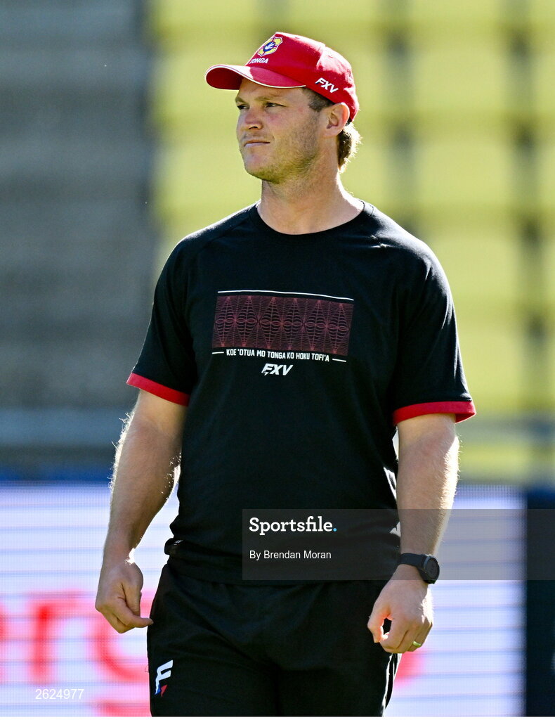 15 September 2023; Tonga atack coach Tyler Bleyendaal during the Tonga rugby squad captain's run at the Stade de la Beaujoire in Nantes, France. Photo by Brendan Moran/Sportsfile
