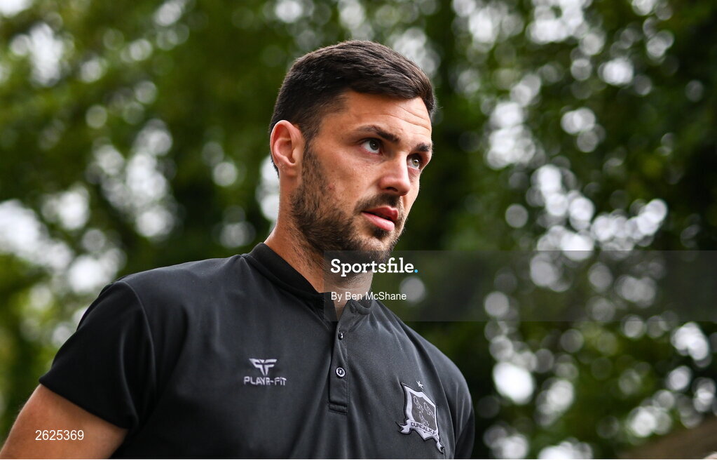 15 September 2023; Patrick Hoban of Dundalk arrives before the Sports Direct Men’s FAI Cup quarter-final match between Galway United and Dundalk at Eamonn Deacy Park in Galway. Photo by Ben McShane/Sportsfile