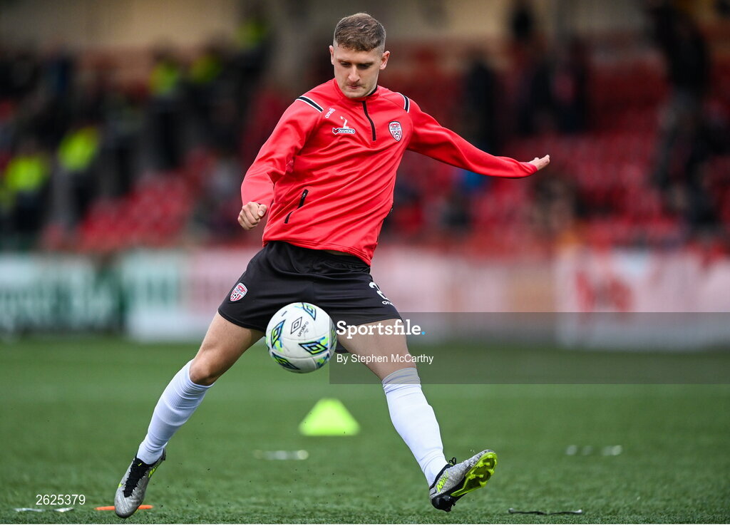 15 September 2023; Ronan Boyce of Derry City before the SSE Airtricity Men's Premier Division match between Derry City and Shamrock Rovers at The Ryan McBride Brandywell Stadium in Derry. Photo by Stephen McCarthy/Sportsfile