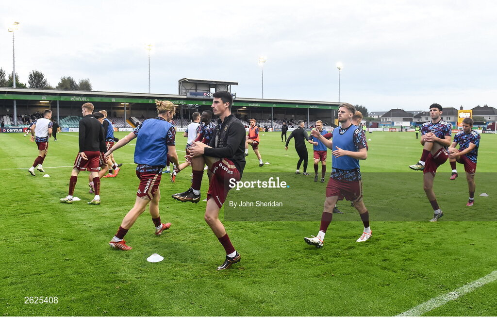 15 September 2023; The Galway United squad warm-up before the Sports Direct Men’s FAI Cup quarter-final match between Galway United and Dundalk at Eamonn Deacy Park in Galway. Photo by John Sheridan/Sportsfile