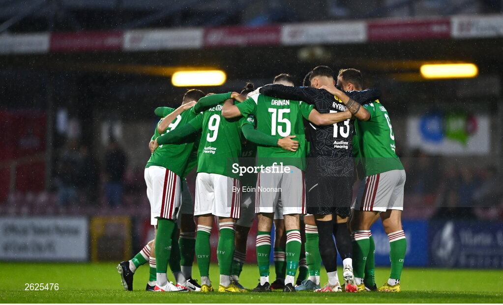 15 September 2023; Cork City players huddle before the Sports Direct Men’s FAI Cup quarter final match between Cork City and Wexford at Turner's Cross in Cork. Photo by Eóin Noonan/Sportsfile